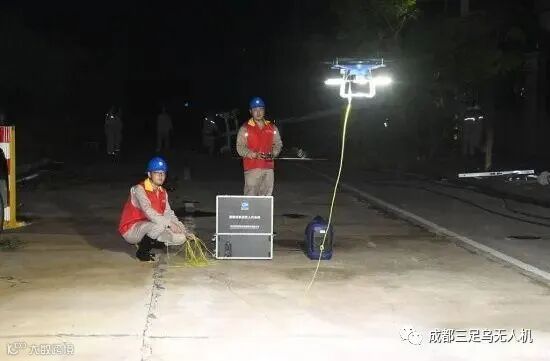 在夜间搜救时可利用无人机搭载探照灯,为救援人员进行指引和辅助照明,能够不受地形的限制,提供移动的光源。发现管涌、溃堤等险情时,由于临时搭建输电线路效率过低,特殊地区受地形、地面光源等限制,还可利用无人机搭载照明设备为抢险救援人员提供高空应急光源。