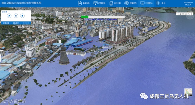 运用无人机航拍采集高清影像,制作风险点全景照片,并进行文字标注,标明路线、堤坝、村镇和人口等相关信息。制作现场三维模型,开展模拟洪涝灾害淹没分析,获取堤坝长度,灾害面积、体积等相关数据,及时反应灾害发展,为救援提供决策辅助。
