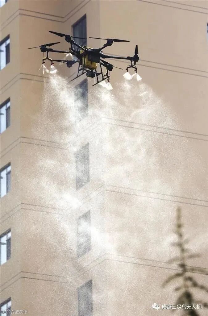 洪涝灾害期间由于食物受淹变质、畜禽淹水死亡等情况,易腐烂滋生病原微生物污染环境、空气、水资源等导致疫病流行,退水后需第一时间进行消杀,避免病毒、疫情传播。借助无人机搭载喷头设备消杀可有效避免交叉传染风险和提高喷洒覆盖范围。