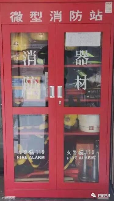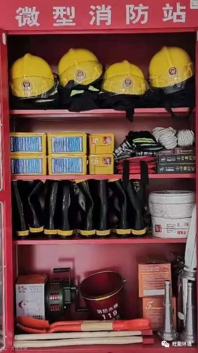 微型消防站建在办公楼大厅明显位置,虽然只有一个设备柜,但是消防服、扳手、水枪、水带、灭火器等设备样样齐全。如果遇到初期的火灾,能及时快速地赶到火灾现场进行扑救和处置,为专业消防队的到达赢得时间,为安全生产提供保障。