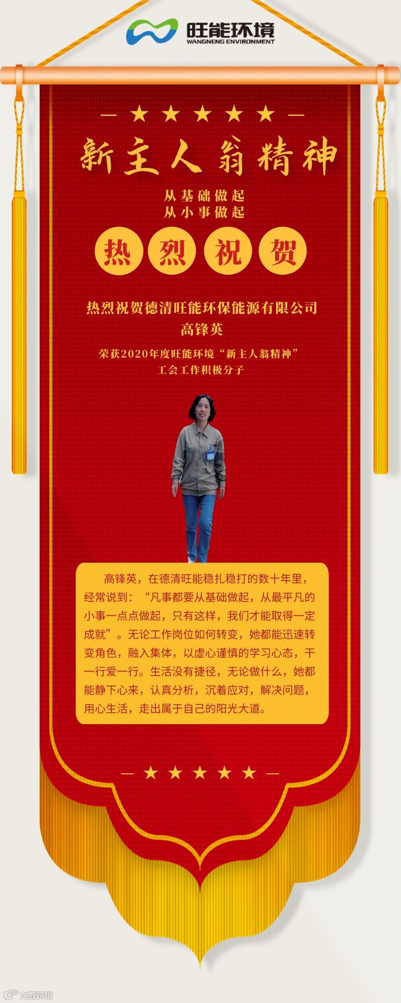 高锋英在工作期间,积极主动完成了德清旺能各项资质的办理,2019年,取得高新技术企业证书,2020年9月,取得炉排炉项目电力业务许可证。