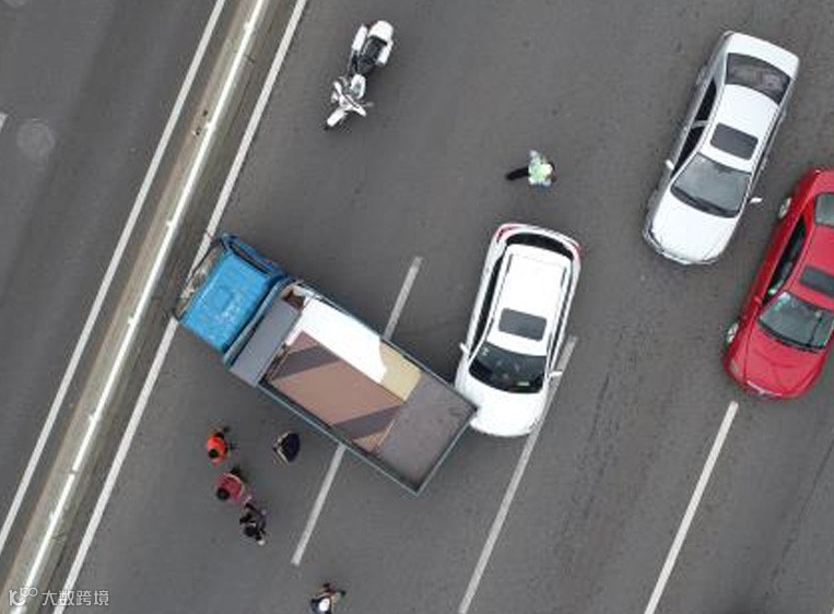 高速公路交通事故发生后无人机可迅速到达事故现场,操作无人机升空进行勘察,用时 5 分钟左右即可完成事故勘察。完成勘察后利用无人机携带的喊话设备,告知车主迅速撤离事故现场并恢复道路正常秩序,真正实现快处快撤。后期通过处理软件根据已经设置好的标志物进行测距,最后可做到到精准定责。