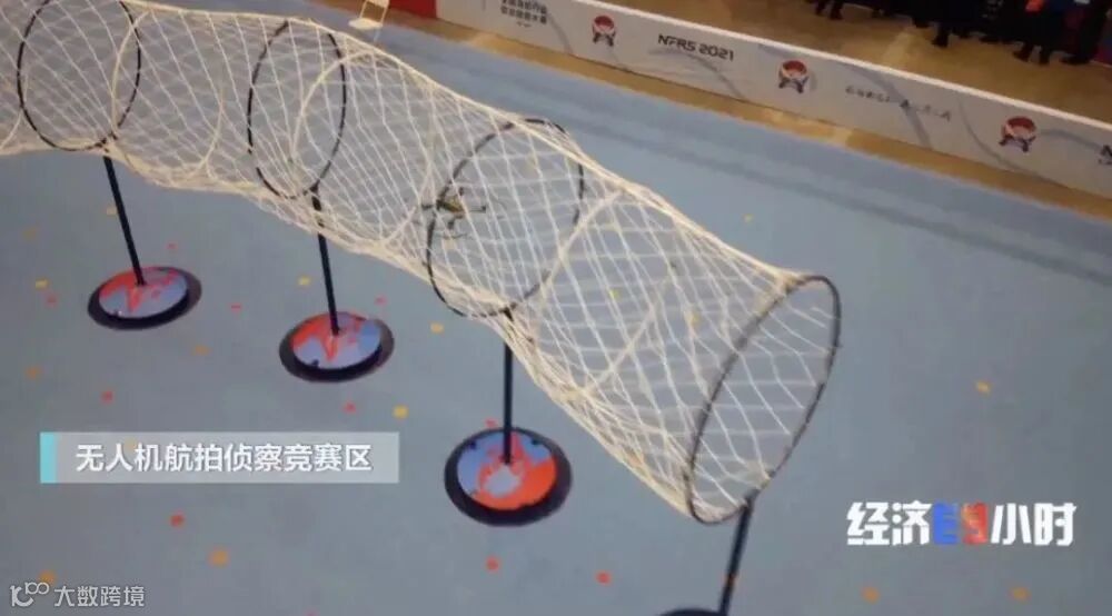 在其中的无人机航拍侦察竞赛区,需要参赛队员操控无人机穿过一段狭长的“S”形障碍网。