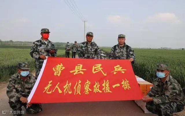 2021年3月,曹县人武部结合民兵编组任务调整,依托县农业农村局植保站编建民兵无人机侦察救援排,主要担负遇有突发事件或在抢险救灾中的空中侦察任务,平时在农忙时节助力农户在田间、果园喷洒农药化肥,竭力为乡村振兴发挥排头兵的作用。