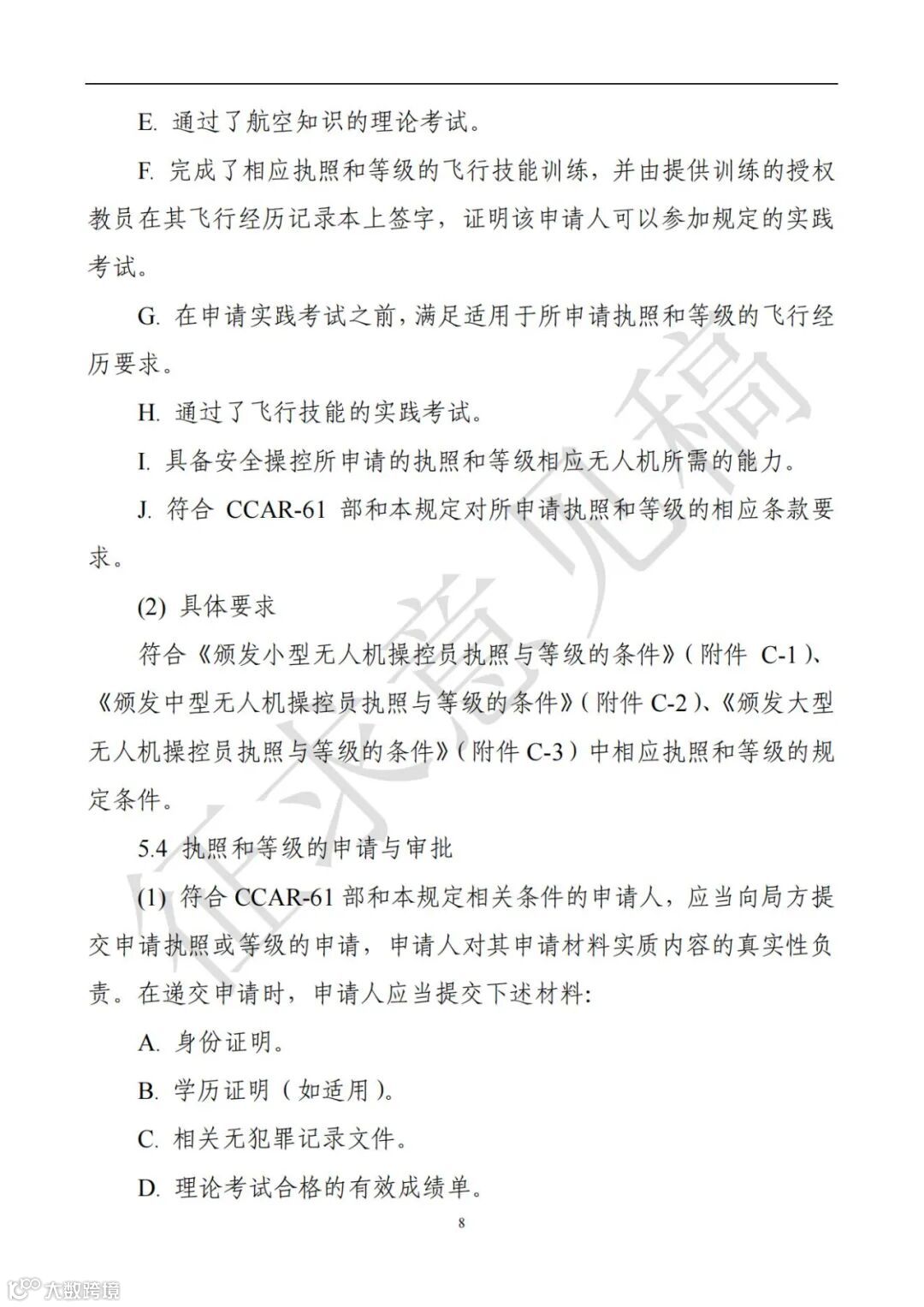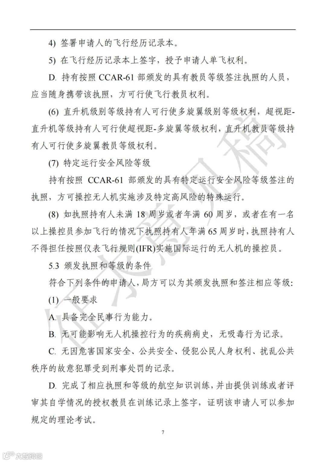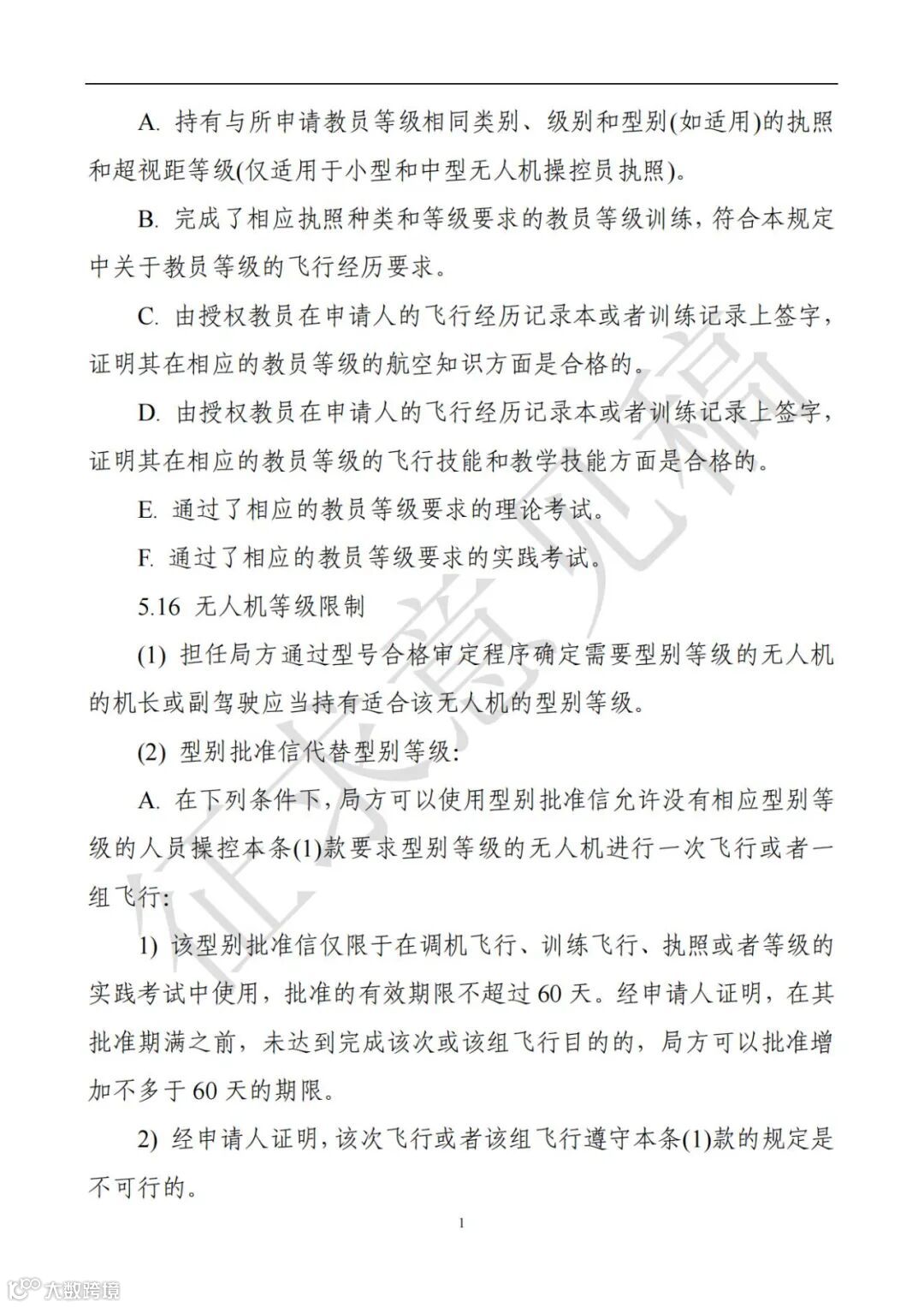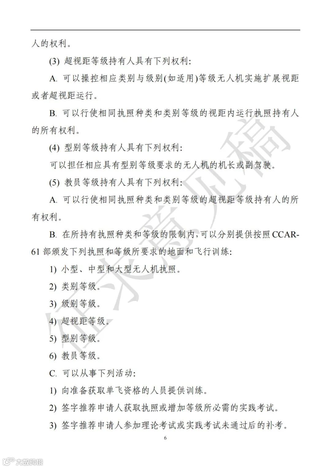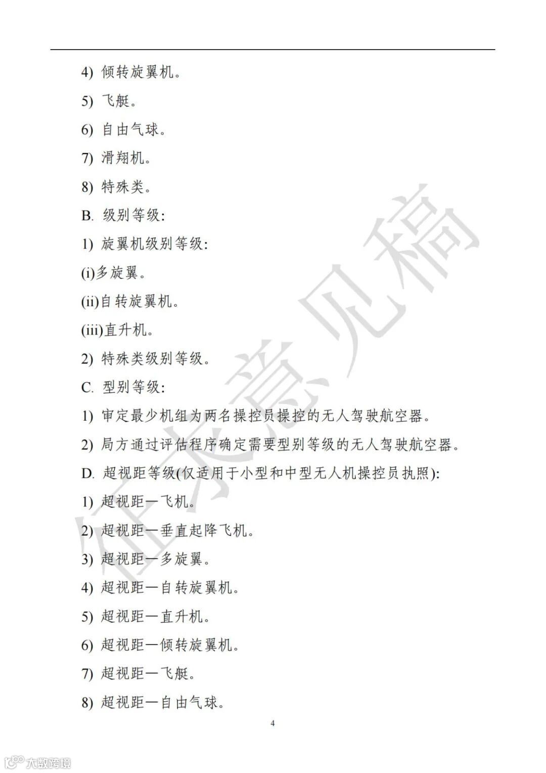 D:超视距等级:局方通过评估程序确定需要型别等级的无人驾驶航空器。