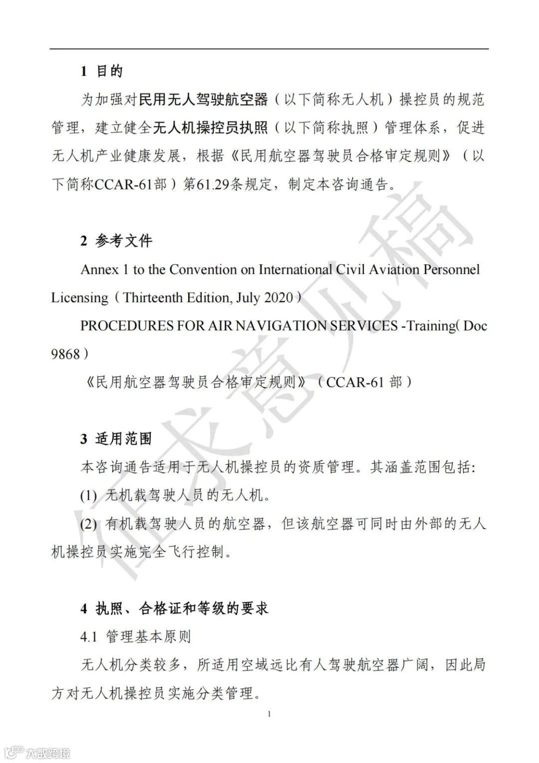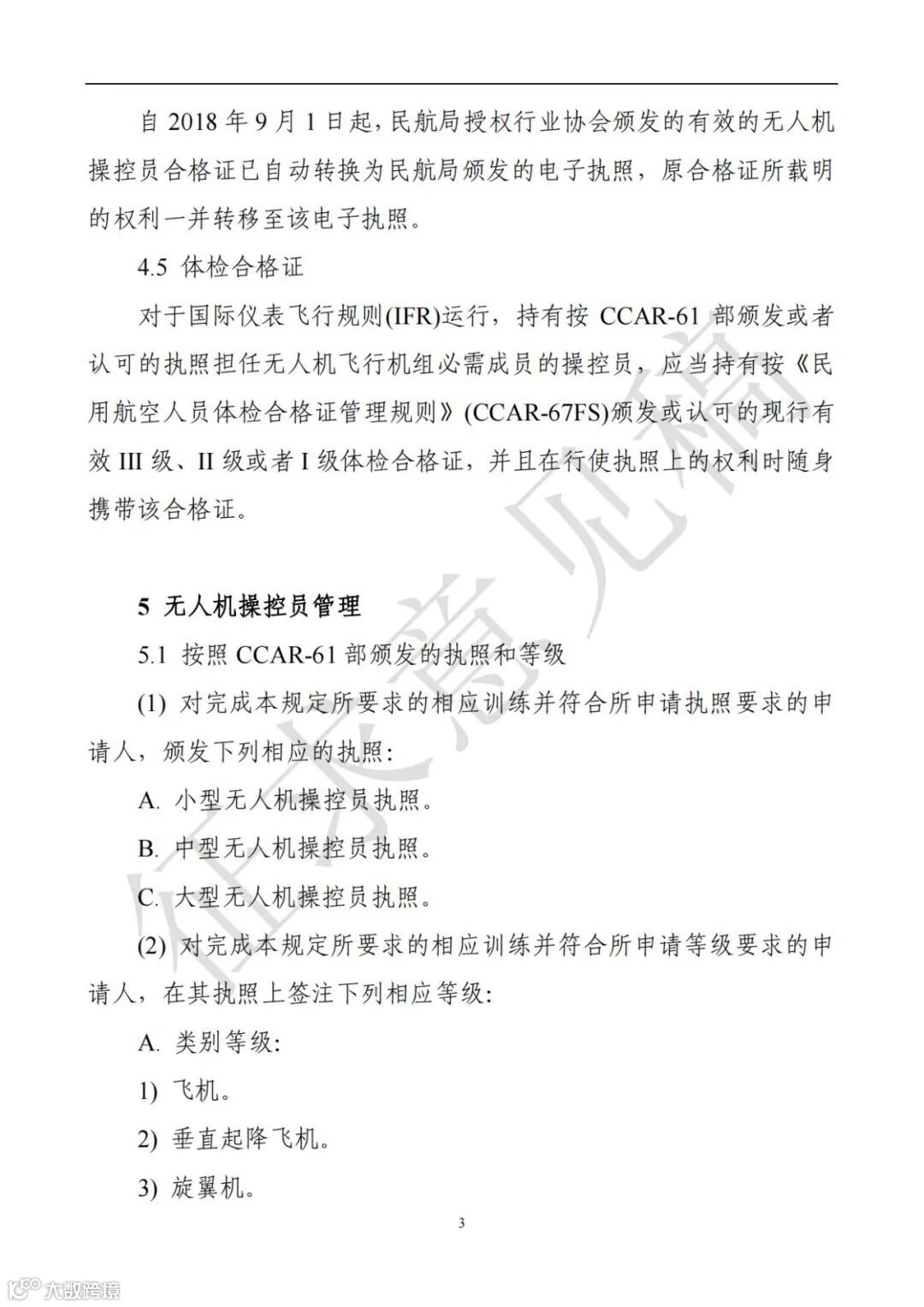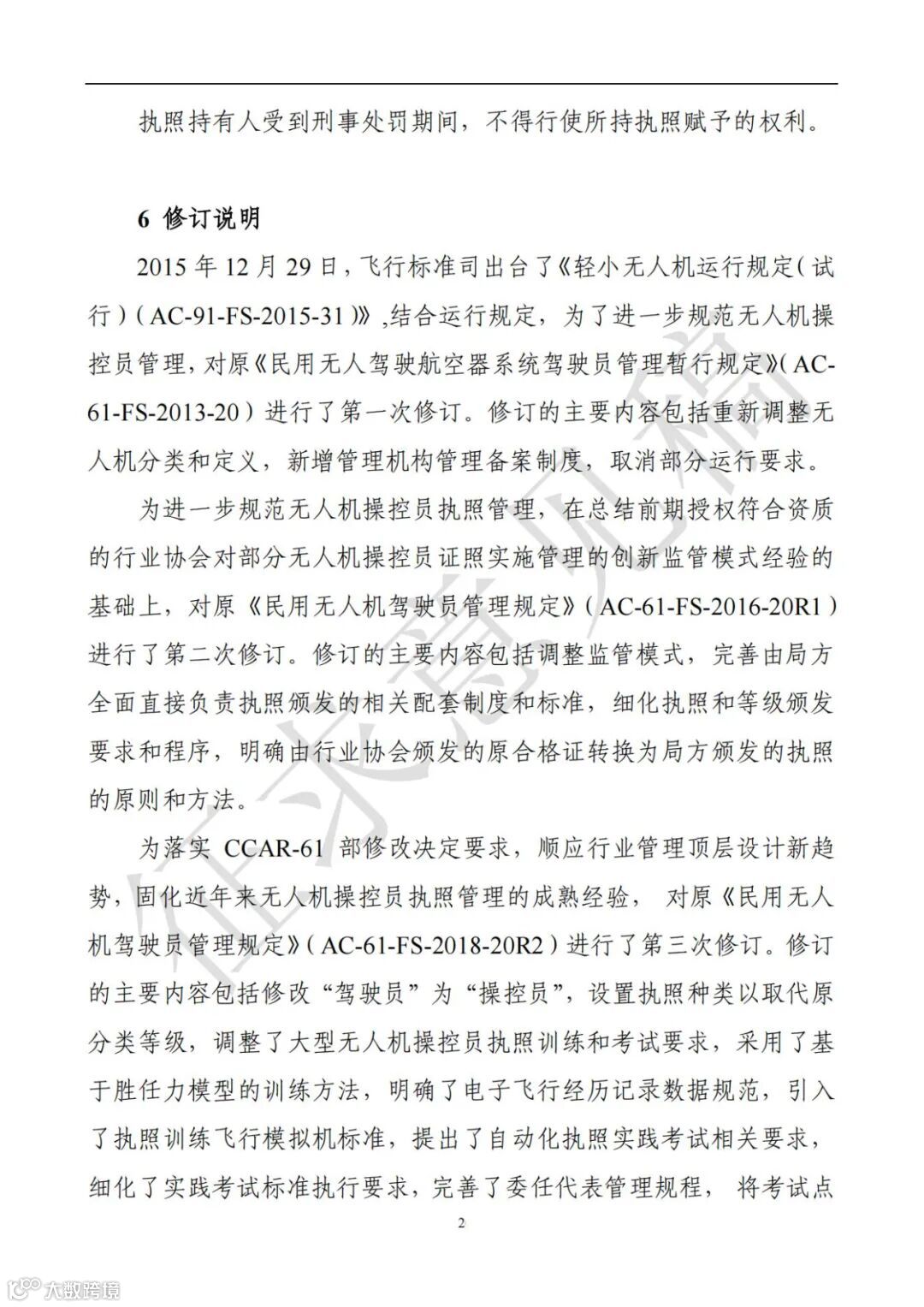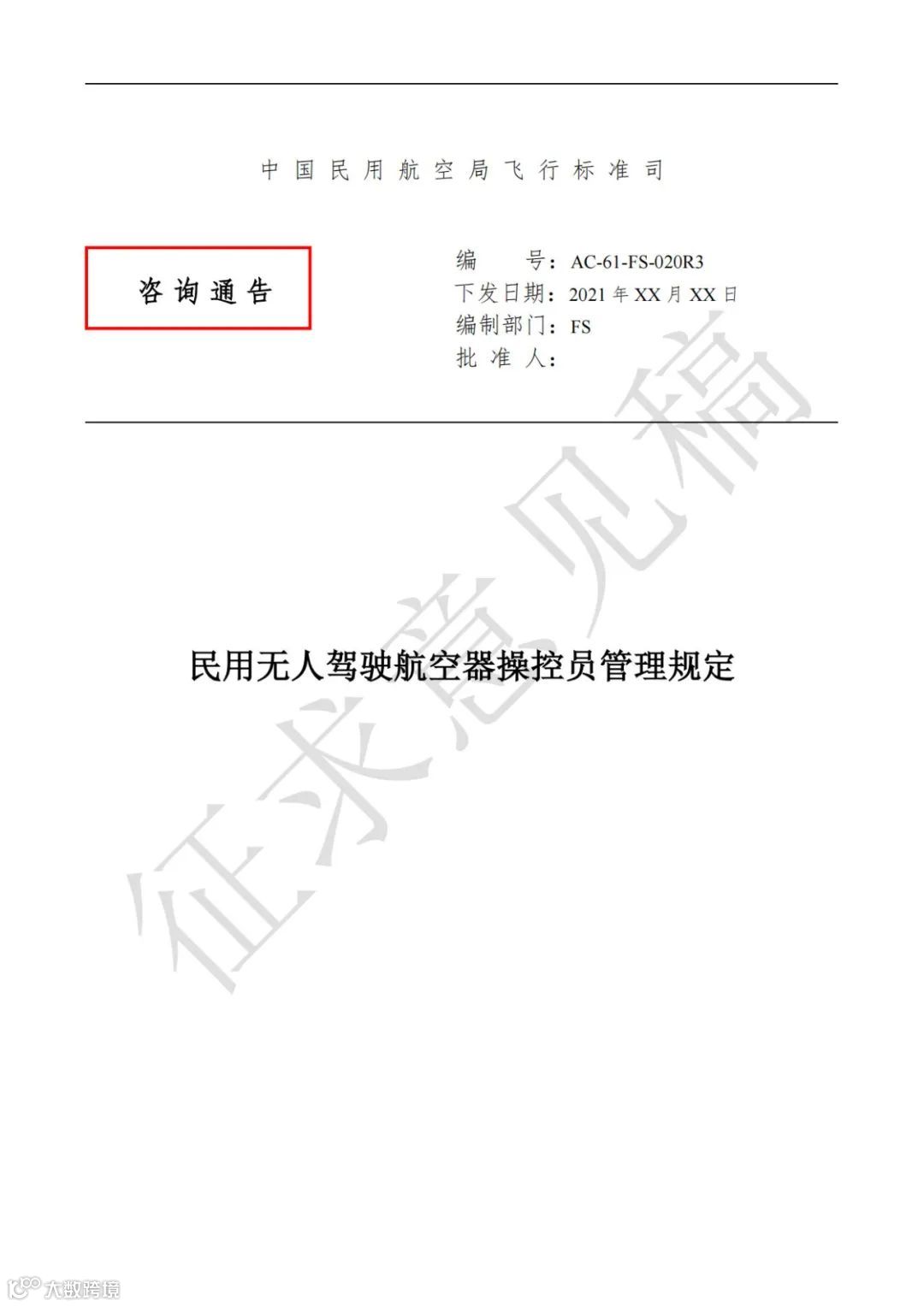 为进一步规范民用无人驾驶航空器操控员执照管理,在全面总结前期实践经验的基础上,飞行标准司修订了咨询通告《民用无人驾驶航空器操控员管理规定》。