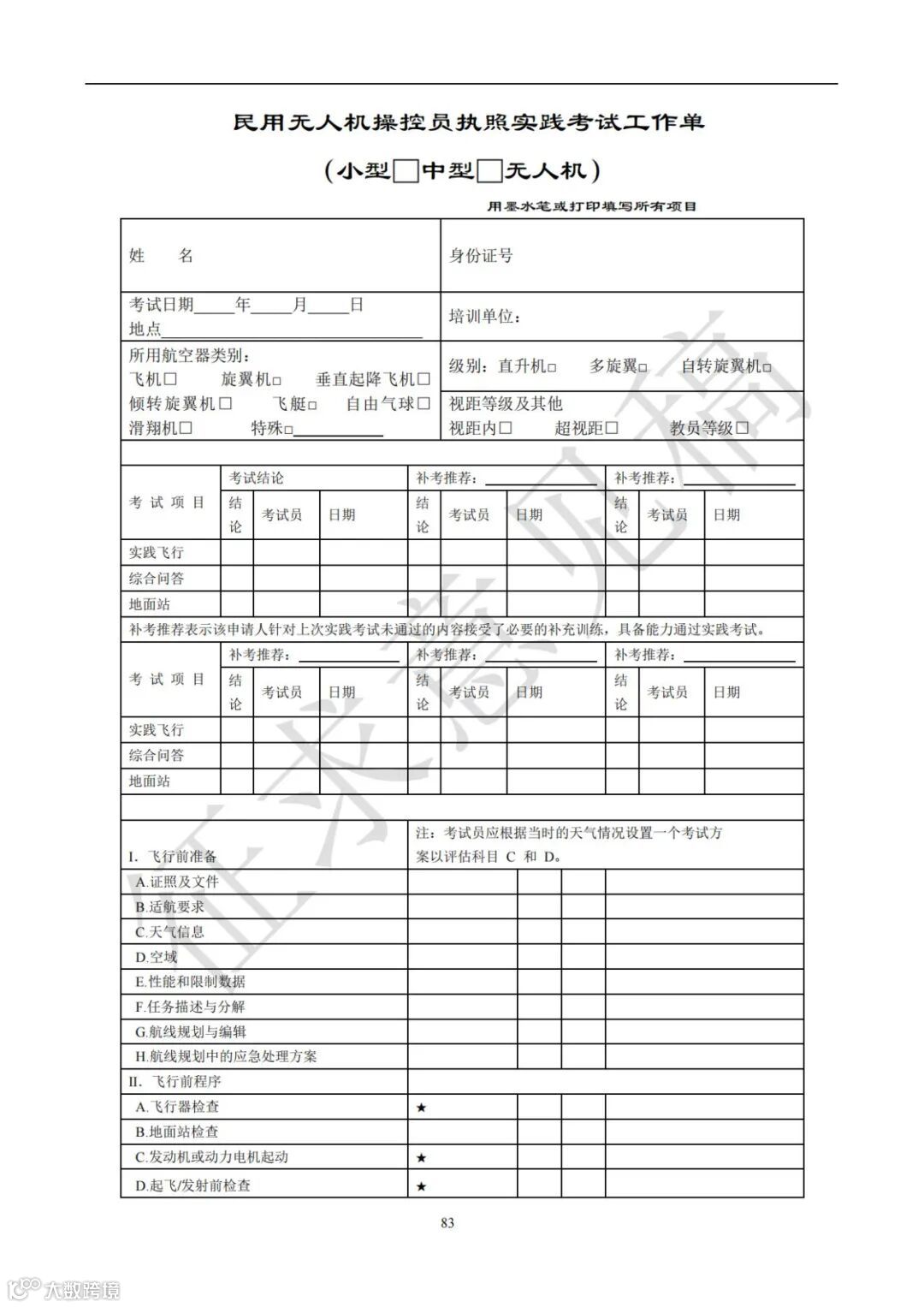 B. 中型无人机操控员执照。