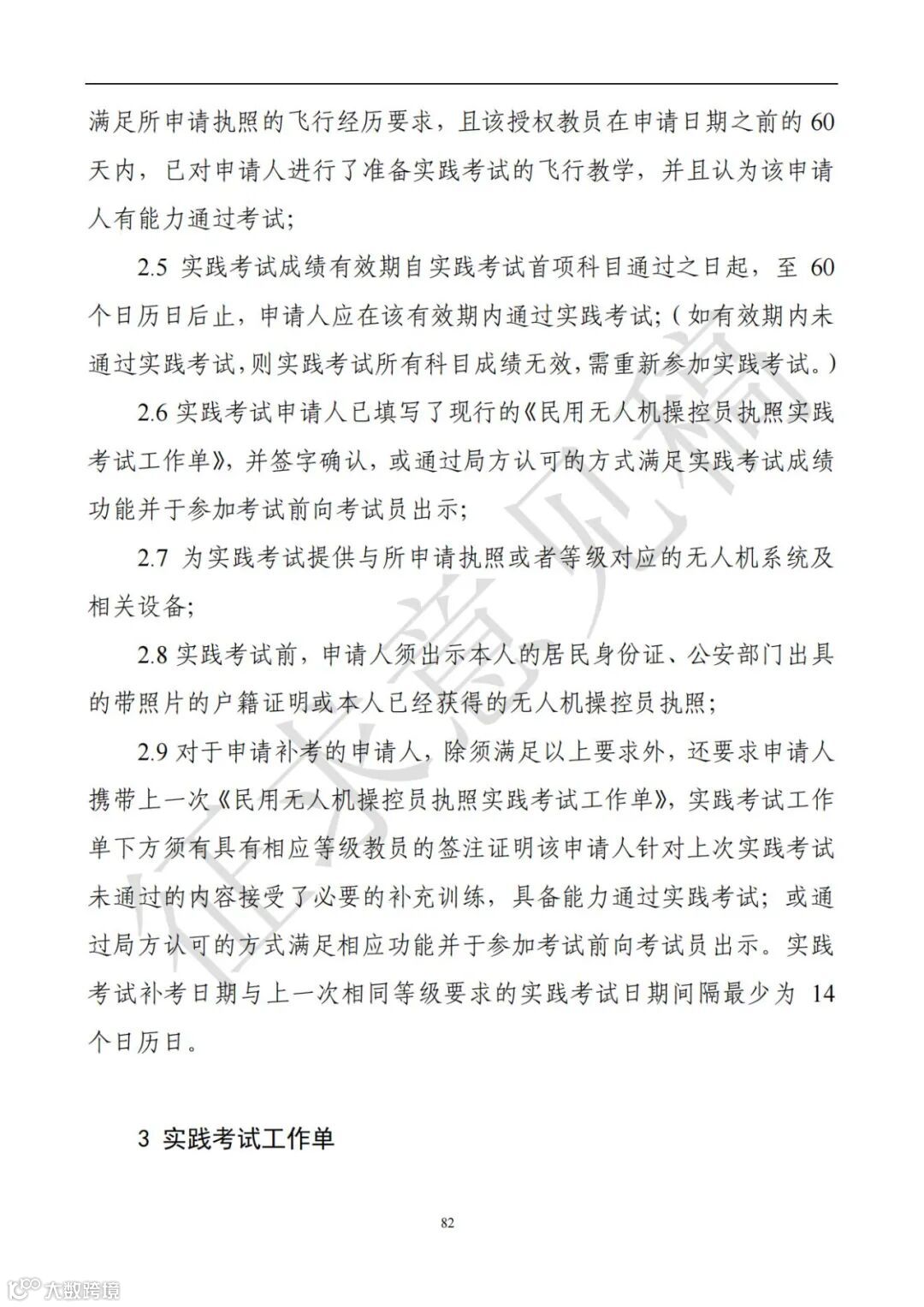 调整了大型无人机操控员执照训练和考试要求:采用了基于胜任力模型的训练方法,明确了电子飞行经历记录数据规范,引入了执照训练飞行模拟机标准,提出了自动化执照实践考试相关要求, 细化了实践考试标准执行要求,完善了委任代表管理规程, 将考试点 21全面纳入局方管理体系以加强考试点评估规范性和服务标准化程度。