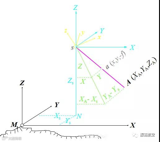 确定摄影瞬间摄影物镜(摄影中心)与像片在地面设定的空间坐标系中的位置与姿态的参数,即确定这三者之间相关位置的参数;