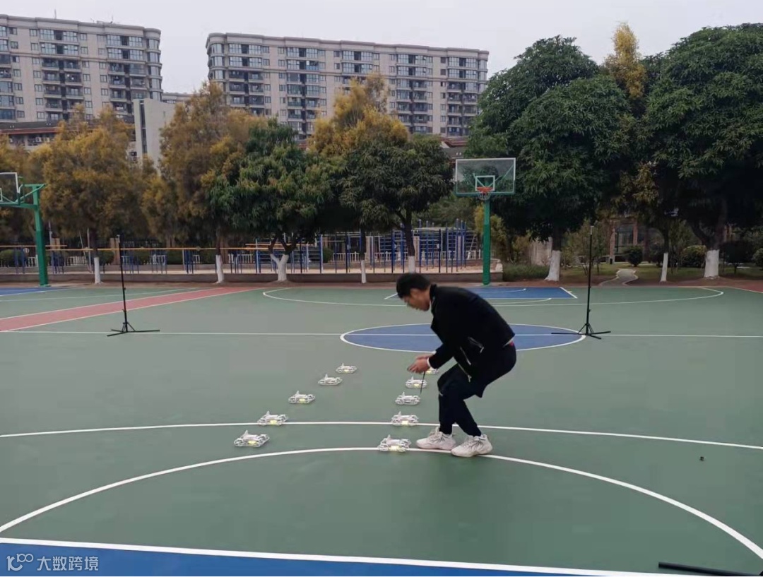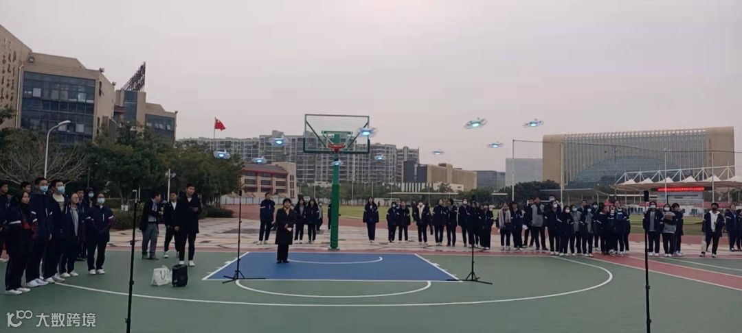 在无人机专业老师的操控下,十架无人机同时放飞。精彩的表演让师生们掌声连连,兴奋不已,体验着无人机科技带来的视觉享受。