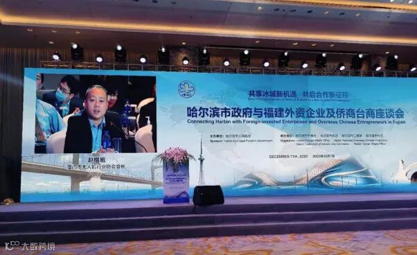 2020年12月7日,由哈尔滨市人民政府主办,市外事办、市侨联等单位承办的“哈尔滨市政府与福建外资企业及侨商台商座谈会”在厦门香格里拉大酒店举行,来自福建省厦门、泉州、漳州等地的200余位知名外资企业家及侨商台商代表参加座谈会。 厦门市无人机行业协会、厦门中海航通用航空科技有限公司、厦门小飞客教育科技有限公司应邀参加此次座谈会。