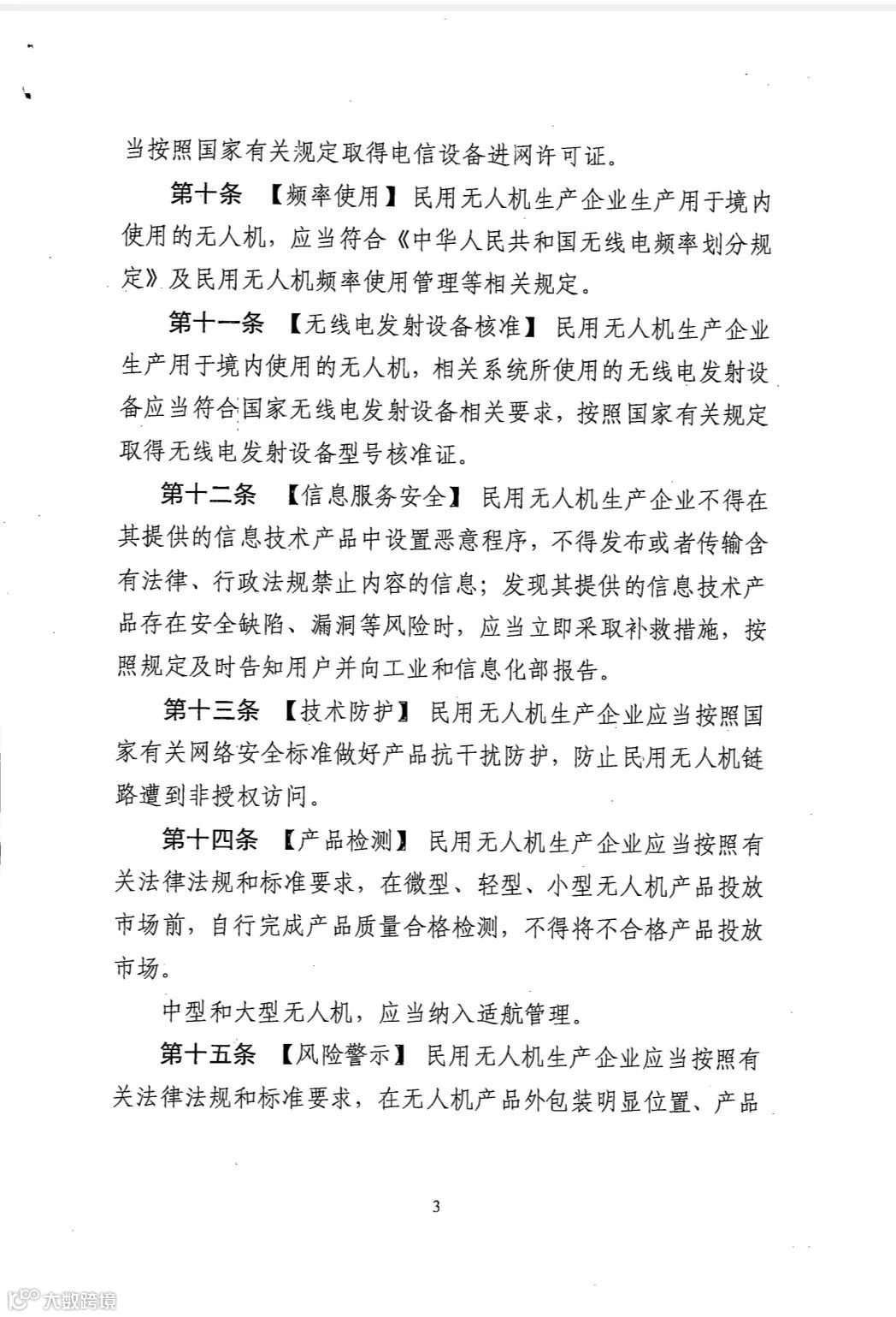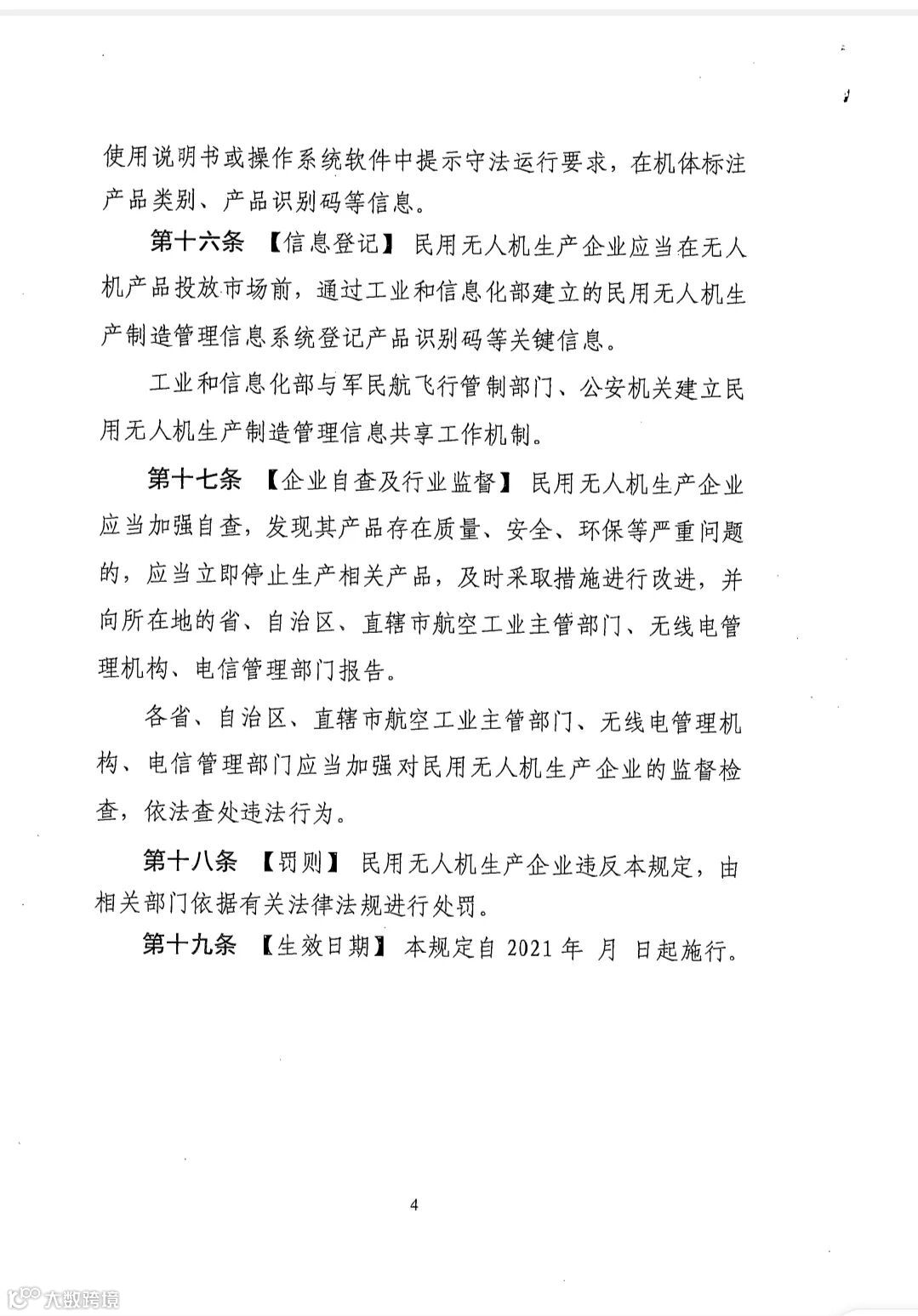 《规定》指出,民用无人机生产制造行业管理归属工业和信息化部负责,民用无人机生产企业生产用于境内使用的无人机,应在产品中设置电子围栏,除微型以外的民用无人机,还应当具备应急处置功能。在无人机产品投放市场前,企业要将产品识别码等相关信息登记到民用无人机生产制造管理系统。以下是正文的详细内容: