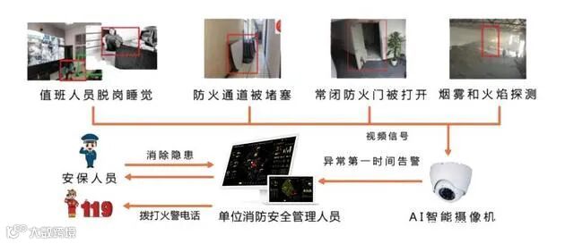 湖南省钜升畅安智慧消防系统具有超大范围信号覆盖、超远距离无线通信的优势,能做到对火灾隐患全面、大范围的实时监测,24小时全天候运行;系统会依据算法判断距离报警点最近的监控设备,同时对报警设备进行关联,综合计算并自动罗列出监控设备列表,实时查看警报所在地周边的实际情况,已提供全方位的视频关联数据给消防相关人员进行参考。同时,对疏散通道、报警点、消防控制室、大厦重点监控区域等进行视频联动,可以对发现的消防通道堵塞情况提前做出预警处理,保障救援通道的通畅性,有效防止火灾发生时因为通道堵塞造成的人员伤亡。