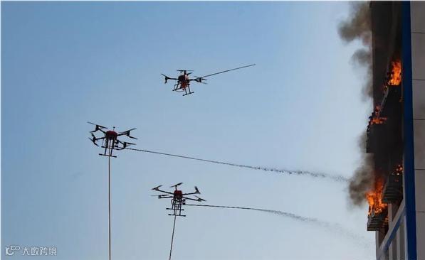 自应急管理部科技和信息化司日前发布《应急管理综合行政执法装备配备标准(征求意见稿)》,在应急管理综合行政执法装备配备表中,将执法无人机列入装备表后。目前,消防无人机等消防灭火设备的应用为百米以上高层建筑室外空间火灾扑救和外墙保温材料火灾扑救提供了一种有效的解决方案。消防无人机主要充当“灭火员”的角色。无人装备可搭载特殊的灭火导弹、破拆弹或泡沫灭火剂,悬浮于着火层上方,随后利用破拆弹锁定目标并快速发射,将玻璃破碎后,在指定区域喷洒灭火剂,精确、快速地将高层建筑等人难以到达企及的地方的火灾扑灭,做到既能灭火又能最大程度减少人员伤亡。