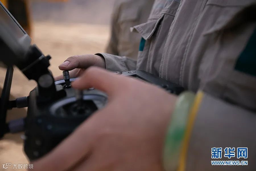 在吐鲁番火焰山,鲁莹正一遍操控无人机一遍与同事交流。新华网 茹斯坦摄