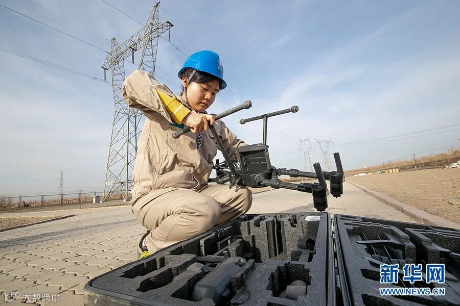 鲁莹操控无人机对110千伏高秦线杆塔和线路进行巡查排障。新华网 茹斯坦摄