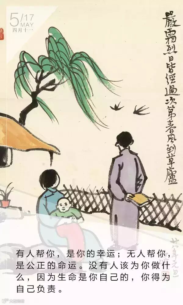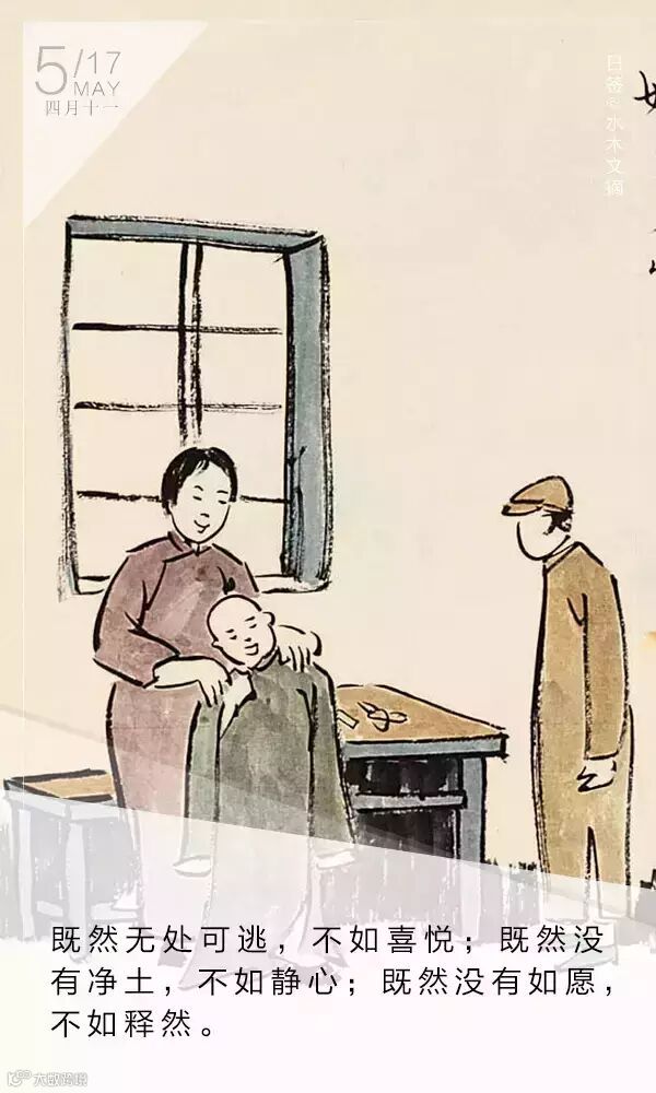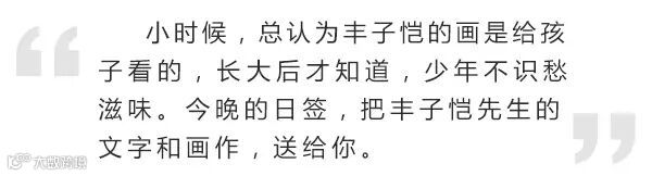 小时候,总认为丰子恺的画是给孩子看的,长大后才知道,少年不识愁滋味。今晚的日签,把丰子恺先生的文字和画作,送给你。山水间的生活,因为需要不便而菜根更香、豆腐更肥,因为寂寥而邻人更亲。藏书如山积,读书如水流。山形有限度,水流无时休