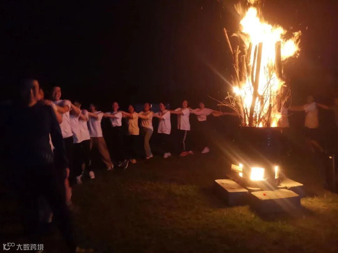 九点的夜幕散落着繁星,草场上腾起篝火,风里传来阵阵笑声,教练带领大家跳欢快的舞蹈,做着轻松的游戏,为今天的团建活动画下圆满的句号。