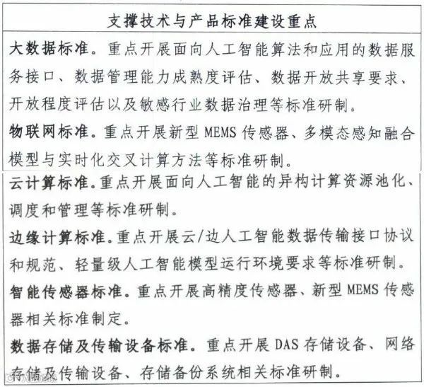 4.边缘计算标准。规范人工智能应用涉及的端计算设备、网络、数据与应用。包括数据传输接口协议、智能数据存储、端端协同、端云协同等标准。