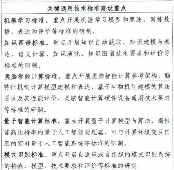 3.类脑智能计算标准。规范类脑计算算法基本模型、性能和应用,为人工智能系统提供新的计算架构,提高人工智能处理复杂问题的能力。包括类脑智能计算参考架构、脑特征机制计算模型建模和表达、基于生物机制建模的算法要求及其性能评价、类脑智能计算硬件设备通用技术要求等标准。