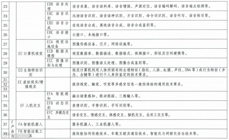 3.计算机视觉标准。规定计算机及视觉感知设备对目标进行检测、识别、跟踪的技术要求,解决图片或视频采集、处理、识别、理解和反馈等各环节的一致性和互联互通问题。计算机视觉标准包括视觉设施设备、数据及模型、图像识别与处理三个部分。