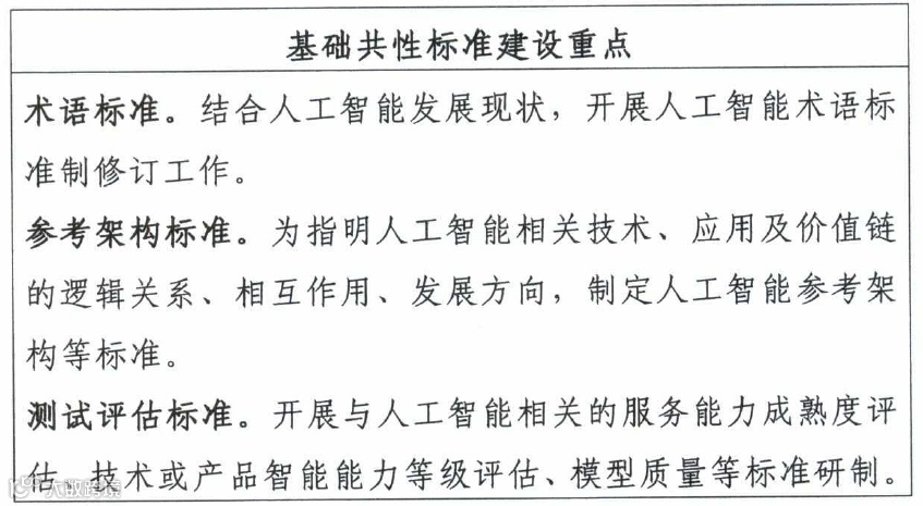其中,人工智能基础安全标准是人工智能安全标准体系的基础性标准,用于指导人工智能安全工作的全过程,主要包括人工智能概念和术语、安全参考架构、基本安全要求等。