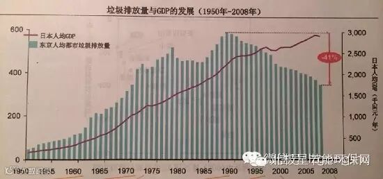 东京人均都市垃圾排放量(千克/年)与GDP发展