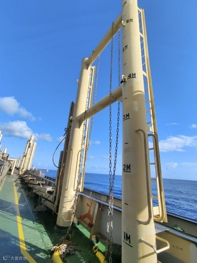 利用马来西亚抛锚的有利时机,我轮用克令吊拉起活动立柱试验活动立柱是否能被顺利拉起并到正常位置,拉起中如有不合适的地方应及时调整连接钢丝长度。拉起活动立柱时大副应在现场监督指导,拉起过程中操吊人员要慢,稳,听从大副指挥。拉起最后注意每根活动立柱是否能站直,最后两根活动立柱的折叠部分是否能被顺利展开。
