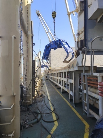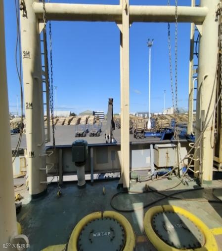 我轮在认真检查和评估每根克令吊的钢丝状况后,更换了1、2号克令吊的吊货钢丝。抵港前,大副提前准备好克令吊的检验证书复印件、克令吊钢丝的证书、更换日期以及平时的检查和保养记录。克令吊BLOCK要保证各转动部位加油充足、活络,滑车外壳无损坏,滑车,卸扣,钩头的编号铅印清晰并且和证书一致。钩头卸扣的安全销完好无损,船上提前卸掉钩头以方便安装岸上的专用木材吊具。克令吊内部操纵室要有良好的制冷和取暖设备,雨刷器,照明要正常工作。操纵室玻璃干净透明,各层梯子和平台卫生干净无油污,克令吊入口无杂物堆积。克令吊相关限位要能正常工作,如大臂上下限位,吊货钢丝的上下限位,吊货钢丝的SLACK LIMIT。克令吊的应急停止按钮功能正常。克令吊内部灭火器有月度检查记录,外部逃生梯完好。吊臂的指针除锈活络保证能正常使用,克令吊的座椅符合要求。本轮在卸PKE前进行了克令吊检验,在PKE卸完后紧接着进行了装木材的克令吊检验,我轮均顺利通过。克令吊检验完成后CRANE SURVEYOR会签发一份STEVEDORES SAFETY INSPECTION REPORT。本次新西兰装货较之前最大的变化是装货设备的升级,现在改用吊爪装货了,这样就不会出现之前用钢丝装货因操吊人员野蛮操作导致的钢丝频繁跳槽的现象了。