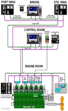 另外,本轮的电器控制系统和以前的电器设备控制也有很大区别。本轮普遍采用当前比较先进的程序控制和PLC控制,包括设备的启动、停止,船舶电站的控制等。机舱监视报警和控制系统也是采用先进的K-Chief500的CAN总线分布式系统。