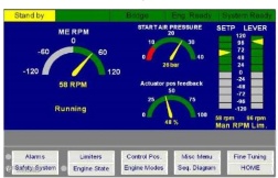 主机控制系统:在MAN—B&W6S80MC-C机中,主机遥控气动部分采用MITSUI新式遥控系统,主机控制系统为挪威生产AutoChiefC20(即ACC20),同时结合AutoChief500的报警监控系统,是集控制、报警、安全保护为一体的综合系统。由数字调速器DGU、安全单元ESU、分布式单元DPU、控制面板ACP及指示控制单元IPU五部分组成。这基本代表了最新潮流的主机遥控系统,再辅以高科技的电脑监控,使得系统的整个控制过程在操作和显示面板上一目了然,相关参数、数据的整定及调节均由厂家整定在最佳状态。对于轮机员来说使用最多的就是ACP,每个轮机员要熟悉它的操作、测试,比如主机的ENGINE MODES、START/STOP/REVERSING、PARAMETER CHANGE等等。