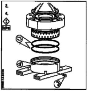缸头:本机型和以前机型的缸头区别在于:为了适应不断强化的负荷要求,增加了一只冷却水套和缸头组装在一起,可随主机吊缸头同步解体、清洁、更换密封令等,由于该水套结构简单,极易拆检,整体结构并不复杂,改善了以前缸套漏水和更换密封O-RING麻烦的问题。(如下图所示)