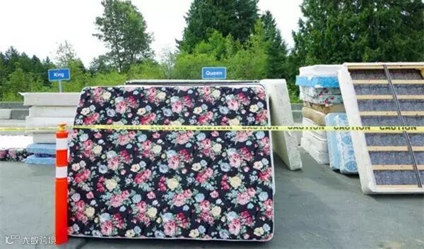 哈特兰垃圾填埋场外,按照大小整齐排放的旧床垫