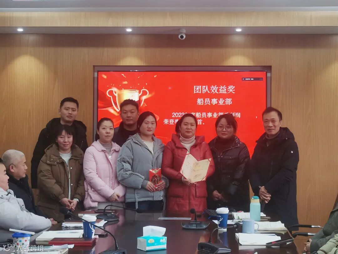 船员事业部在2023年工作中,勤勉奋进,成绩突出,部门利润位列榜首,荣获“团队效益奖”。