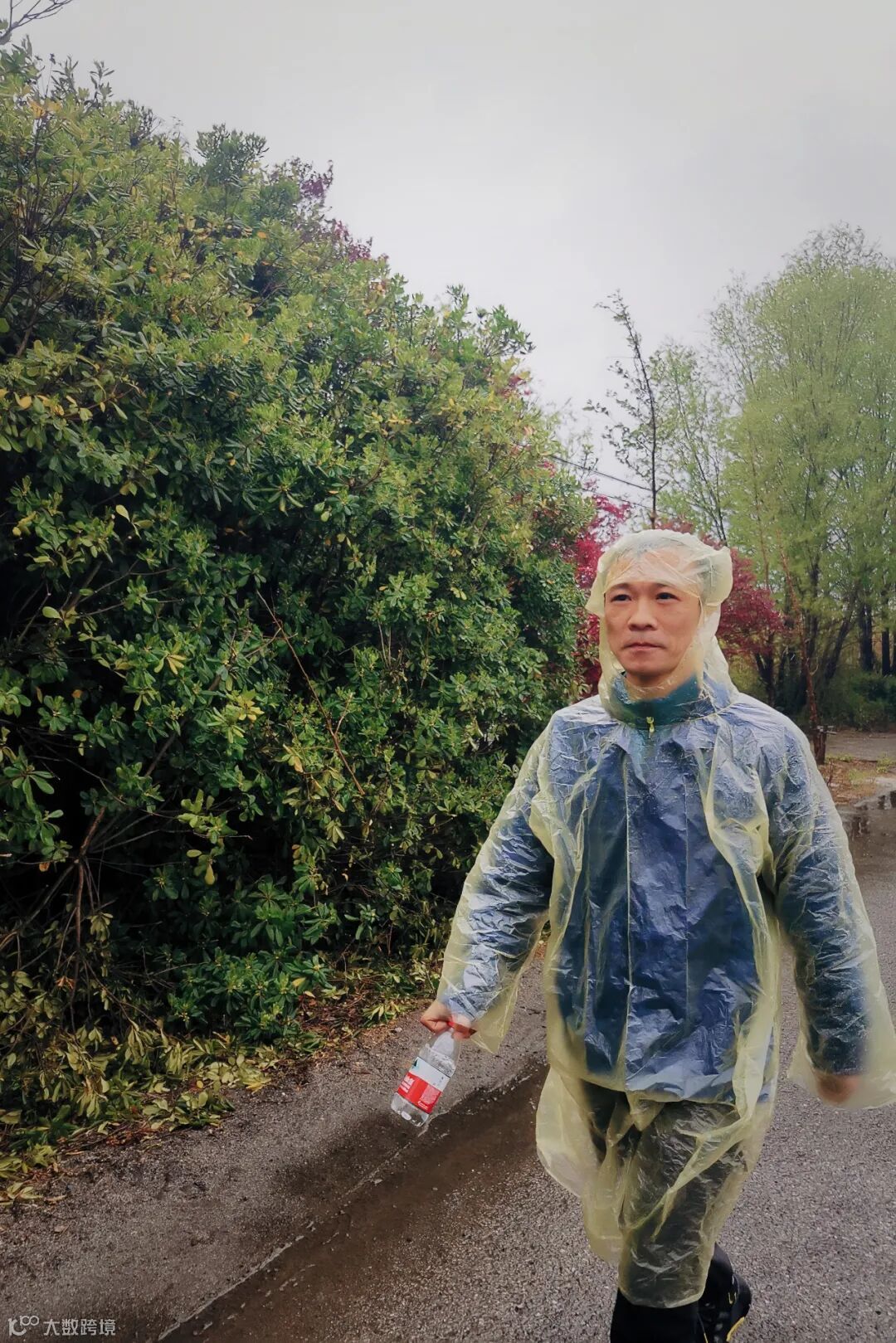 新人带头,旗帜高举,大家套上简单的雨衣,迈出坚定的步伐,在徒步中感受自然,找寻自己。