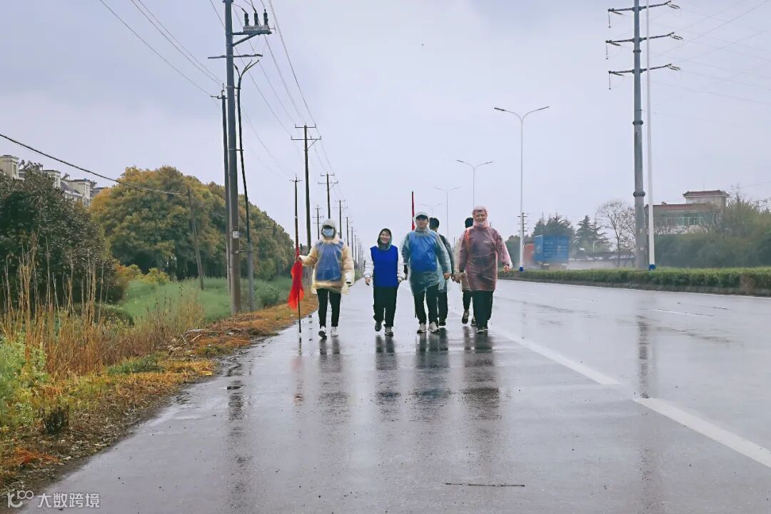 路程过半,多数人渐渐疲惫,但依旧彼此加油鼓劲,携手前行。尽管细雨蒙蒙,但大家早已汗流浃背,体力好的同事换过前人扛起队旗。没有人掉队,有的只是坚持。