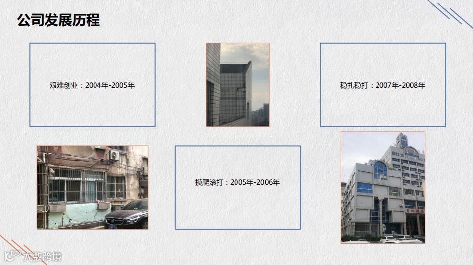 培训次日,公司总经理顾晨阳同志以“积以跬步 以致千里”的主题为新员工倾情讲述公司发展历程——从老小区内二室一厅的生活办公共用套室至大楼楼顶冬冷夏热的毛坯阁楼。历经16年,终于在广袤通城中拥有属于自己的独立办公楼层。每一步的艰辛都能在一张张图片中一一呈现。