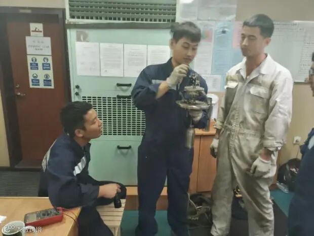 在工作闲暇之余,杨燕军老轨经常组织师傅给大家开小课堂,讲解一些电子电气基础技巧和知识, 帮助轮机员提高电气知识储备。