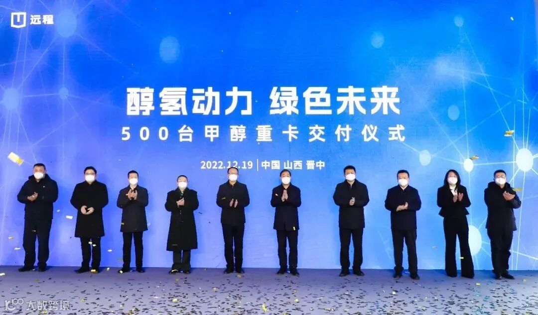 2022年12月19日,远程新能源商用车集团晋中基地500台甲醇重卡交付活动成功举行。本次500台甲醇重卡成功交付,购车企业代表接过一把把致富钥匙,开启了甲醇汽车陆运新程,标志着晋中在国家级甲醇经济示范区建设和本地造甲醇汽车推广上掀开了新的一页。