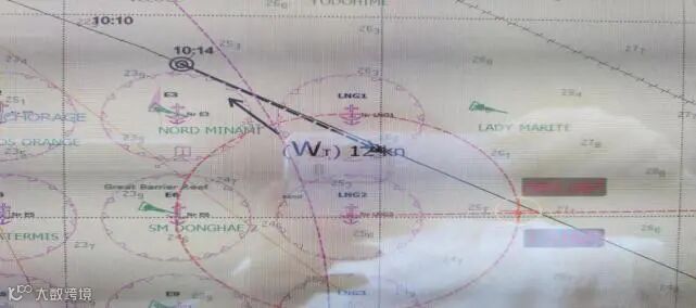 通过提前做功课研究锚地周围环境,了解到抛锚时流向约310度、流速约1节,联系GLADSTONE VTS后告知指定锚位在LNG 2锚泊位以东1海里,我们计划通过GLADSTONE FAIRWAY 6海里范围线(NOR提交点,亦是REEFVTS 与GLADSTONE VTS管辖分界点)后直奔LNG 1与Nr. E3锚泊位之间位置(详见附图),然后转向航向大致120度直奔抛锚点,此时基本接近顶流航向(锚地周围空载船航向基本在120~130度之间),锚地水深25米、沙贝地质,抵达锚地前2小时海里通知机舱备车,大约15海里左右车备妥开始慢慢降速,速度低于5节后开始试验倒车,主机正倒车试验正常后再加车继续驶往锚地,考虑到本次当时顶流流速约1节,跟船长详细讨论了综合因素对抛锚操作做了相应修正,实际操作中具体操作如下: