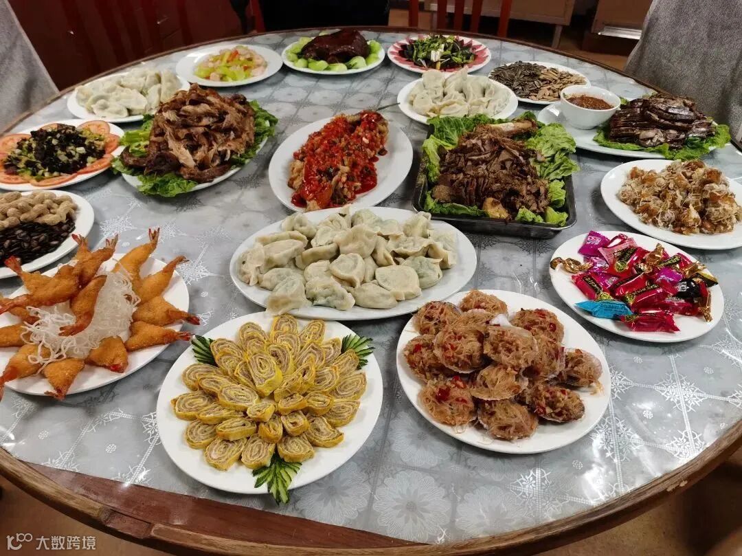 饺子包好了,各种美味的佳肴也在桌上列队欢迎,丰盛年夜饭开始了!只见饭桌上各色菜式应有尽有,每个人的口味都被尽量照顾到。不仅如此,还有着精美的雕花和摆盘,盘子里的花朵被雕刻得栩栩如生,我们都舍不得下口。这都要感谢马卫忠大厨和王安强大台的付出,没有他们今天的忙碌,就没有这一桌精美的年夜饭。