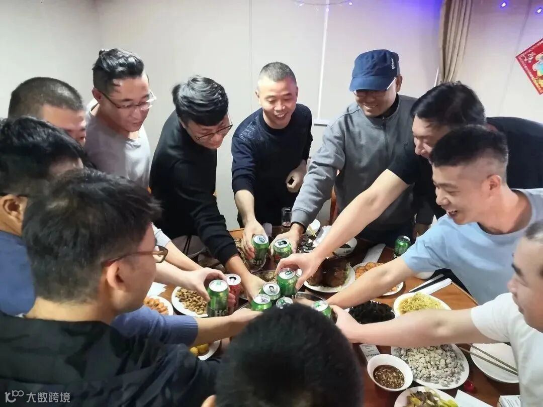 美味的佳肴和热气腾腾的饺子让我们在茫茫大海中也感受到了“家”的味道。推杯换盏之间,你来我往之际,大家逐渐热情高涨,畅所欲言,谈家乡习俗,聊过年感想。我们实习生也趁机向老船员们请教,有感谢帮助的,也有趁着机会化解误会的……你一言我一语,充满欢声笑语。在这样的氛围里,大家的关系也拉近了,心与心之间连在了一起——同在一条船上,我们就是一家人。
