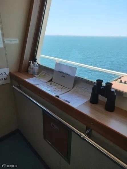 应注意现在疫情期间,充分的消毒工作是必须的,不仅是为了满足港方的要求,也是为我们的自身安全着想。引水上船前应在驾驶台选定出专用位置放置消毒酒精,免水洗酒精洗手液,还有引水专用的望远镜,并用英文标注“PILOT SANITATION AREA”。在驾驶台两翼的靠码头一侧准备好小平台,供靠泊时引水放电脑用。