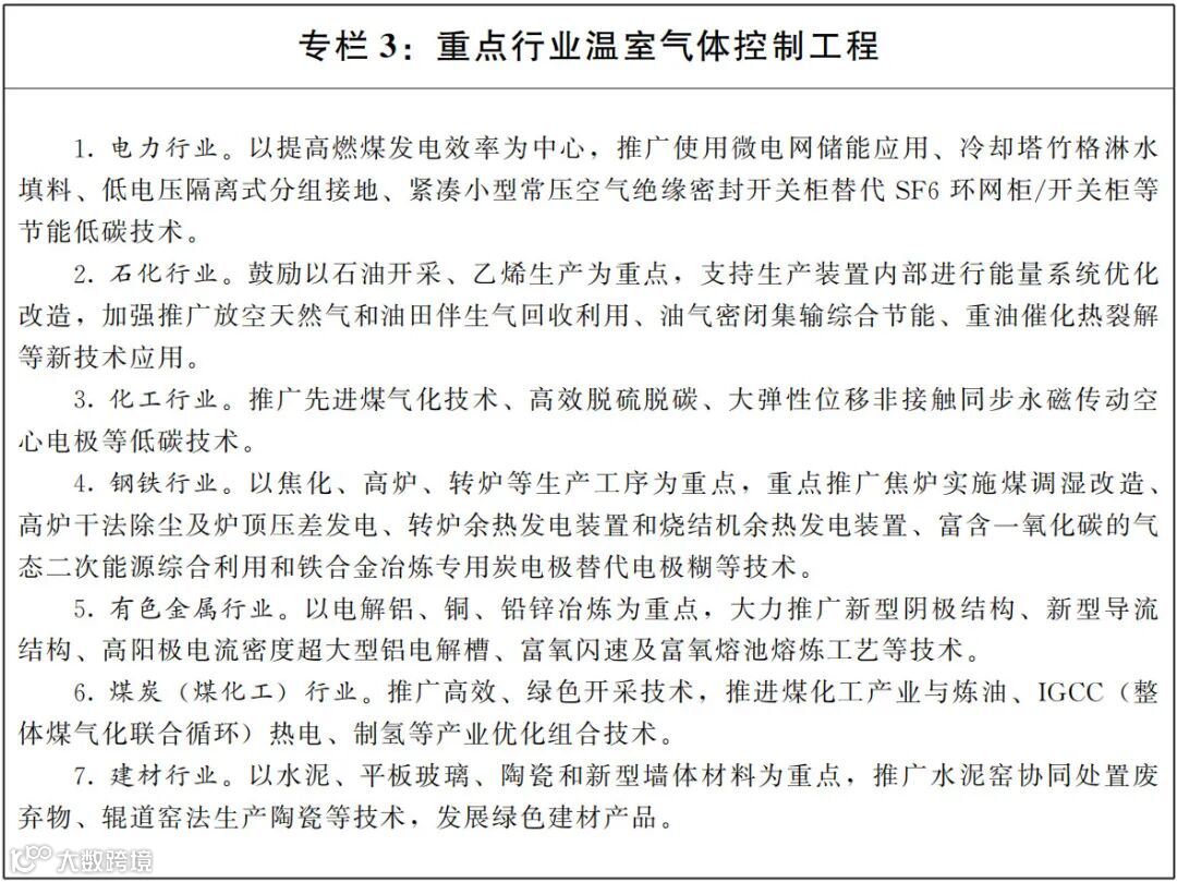 (一)控制工业领域二氧化碳排放