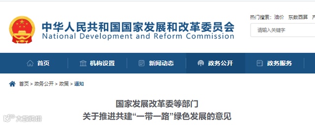 3月28日,国家发改委等部门发布关于推进共建“一带一路”绿色发展的意见。