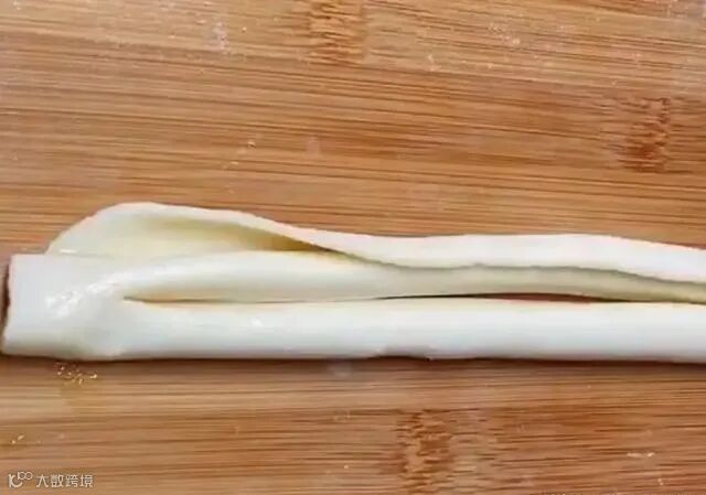 5.把一分为二的 面卷做成类似麻花的条状,卷成紧一些