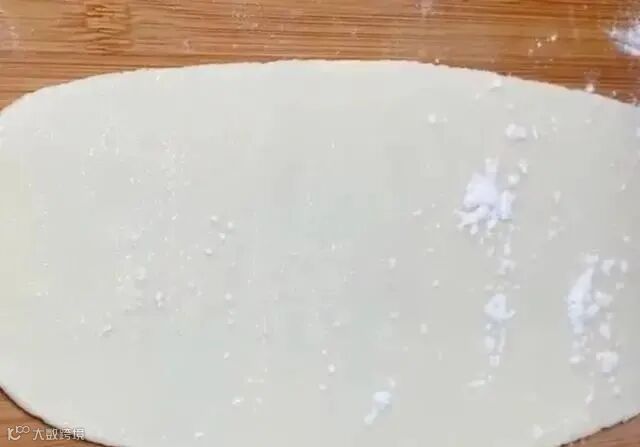 3.把剂子擀成薄片状,不要擀得太薄了,然后在薄片上抹上食用油,撒上食用盐、干面粉。