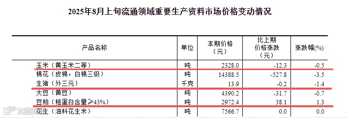 3、国家统计局:8月上旬流通领域生