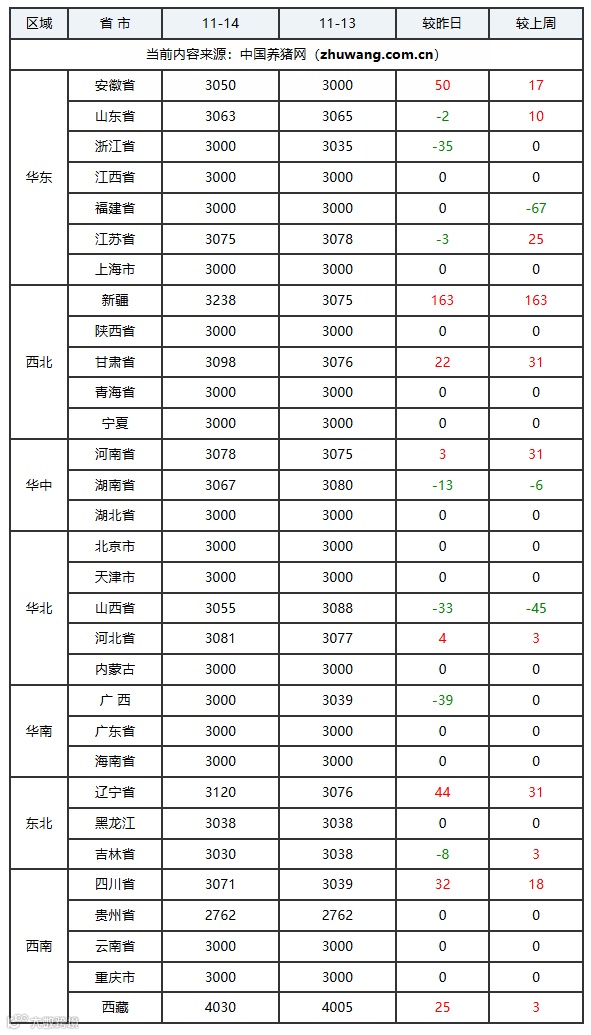 猪价上涨地区(6个):陕西省、青海省、河南省、北京市、河北省、广东省;上涨区间:0.01-0.30元/公斤
