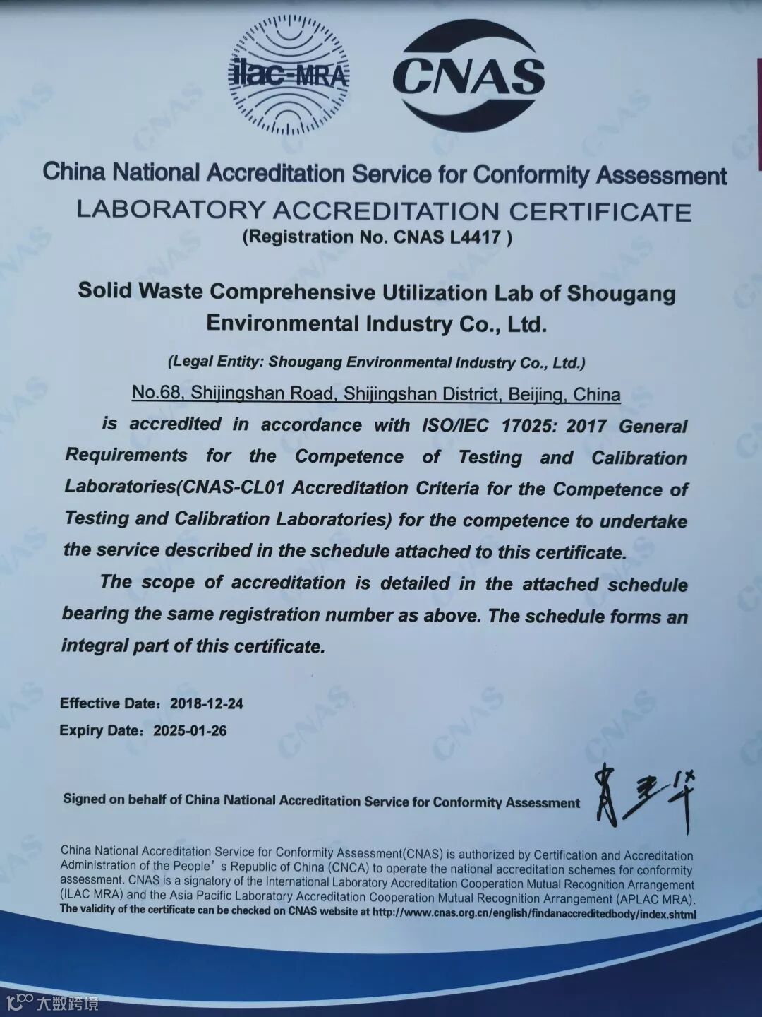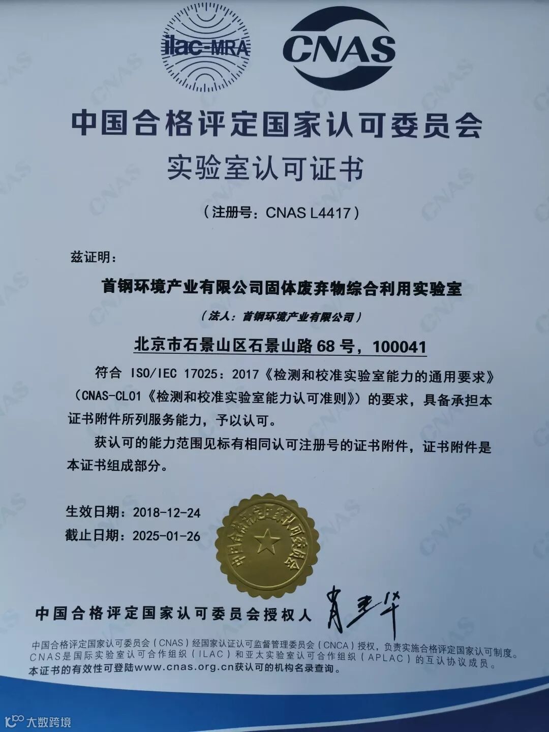 经过一年多的精心筹备,2018年10月20日,首钢环境固体废弃物综合利用实验室接受了中国合格评定国家认可委员会(CNAS)的现场复评审。设计技术中心按时完成评审专家组开具不符合项的整改及整改报告提交工作,最终评审顺利通过。近日,顺利取得CNAS实验室认可证书(NO.CNAS L4417),依据新版体系文件要求认可周期调整为6年,有效期至2025年1月。